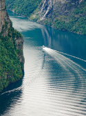 The Geiranger Fjord is a fjord in the Sunnmøre region of Møre og Romsdal county, Norway. It is located entirely in the Stranda Municipality.